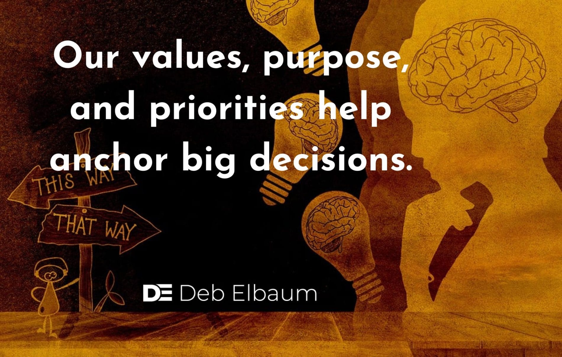 Having a framework for making big decisions that honors what’s most important to you and what you really want can help. When we anchor our decisions in our values, purpose, and priorities, we can make and communicate decisions more efficiently and confidently.